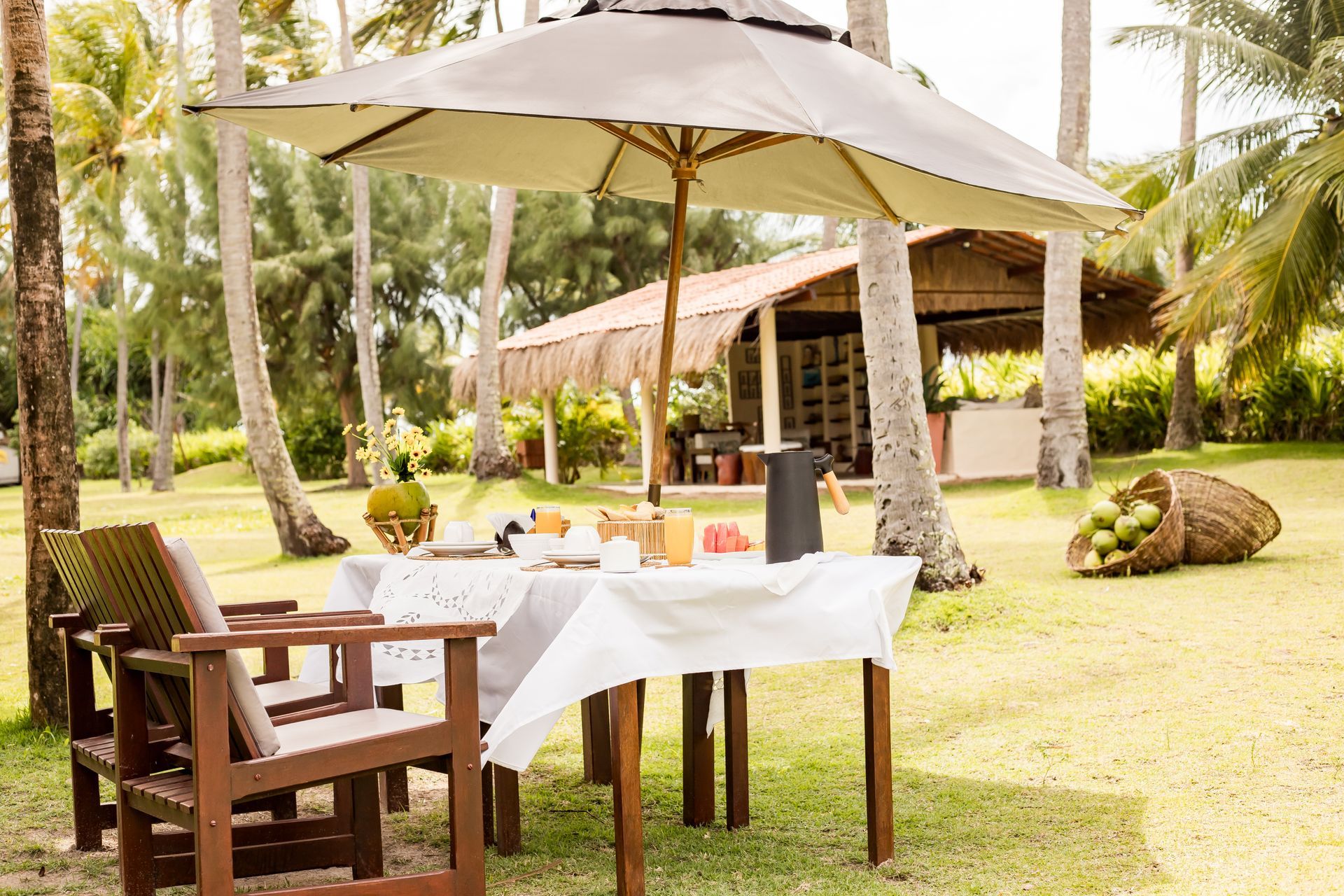 Cada acomodação combina a rusticidade natural da madeira e da palha com toques sofisticados de design, criando um ambiente acolhedor e elegante.